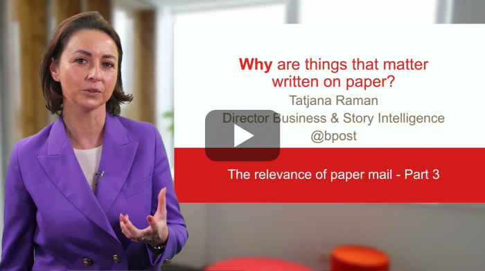 Pour vous guider, Tatjana Raman de chez bpost. Cette vidéo fait partie de la formation vidéo UBA Training 24/7 "Comment atteindre mon consommateur par le biais de sa boîte aux lettres?"